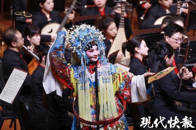 京、扬、越、昆、锡五大戏曲联唱成为本场一大亮点。京剧的华彩、扬剧的淳厚、越剧的婉转、昆曲的雅致与锡剧的明快,在大型民族乐队的衬托下,展现出张力与和谐。