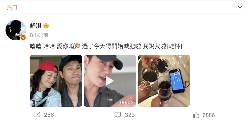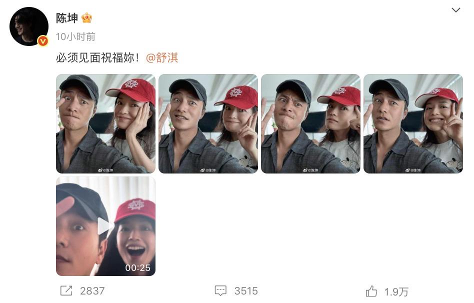 7月23日,”东申未来“更是晒出两人同框自拍,陈坤举着酒杯搞怪,舒淇比耶甜笑,配文 :“必须见面祝福你!好朋友当然要见面庆祝啦”!