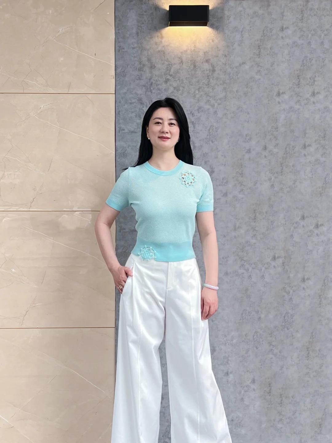 此外,大龄女性在选择亮色系服饰时,还需注意色调深度。亮色系分为高饱和度和低饱和度,高饱和度的亮色系虽然抢眼,但对大龄女性不太友好;而低饱和度的亮色系更容易驾驭,搭配难度降低,既能保证减龄效果,又不会显得浮夸装嫩。比如,一件低饱和度的浅绿色短袖针织衫,搭配一条米色碎花裙,清新又减龄。