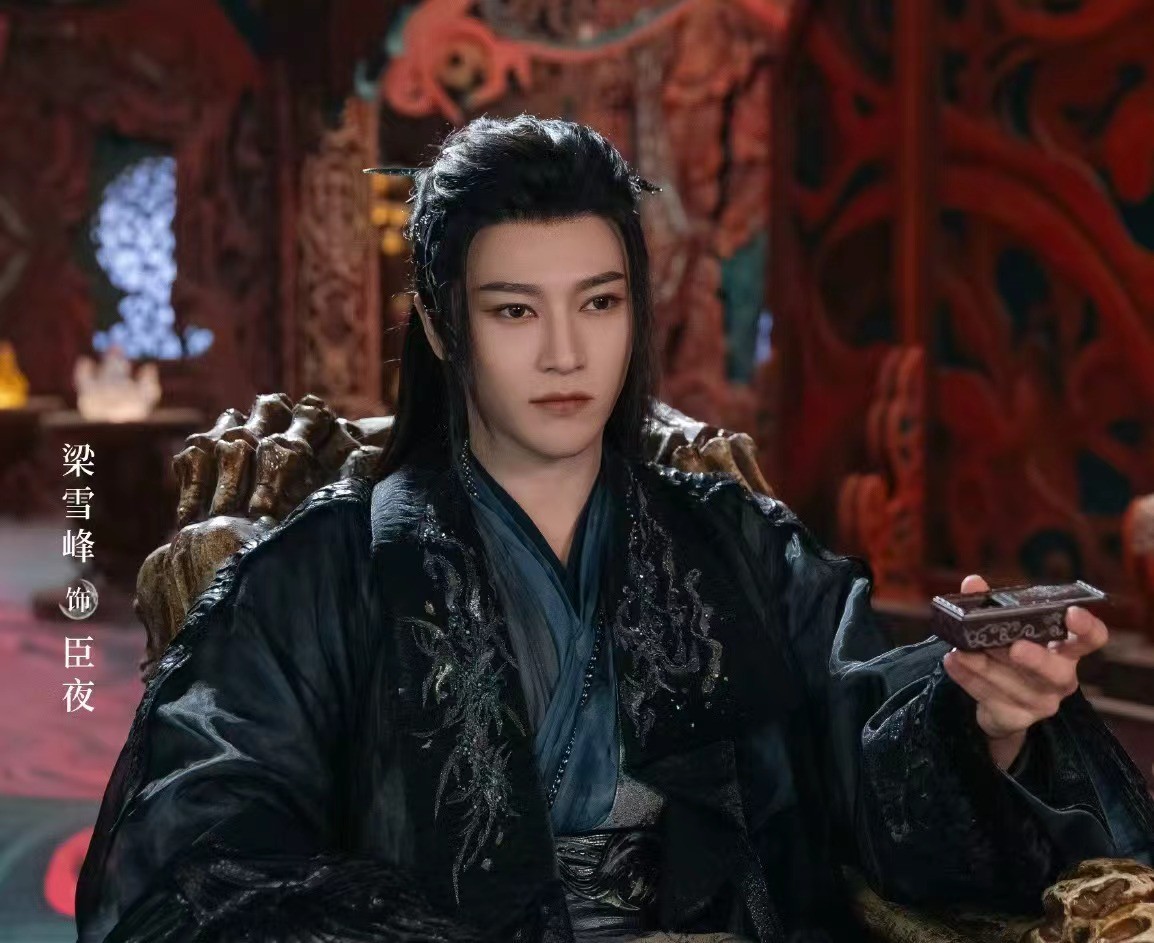面阔方正,一双眸子又黑又亮,五官更是标致到如同AI建模一般,同样是演妖气十足的角色,梁雪峰明显比敖瑞鹏更有气场。