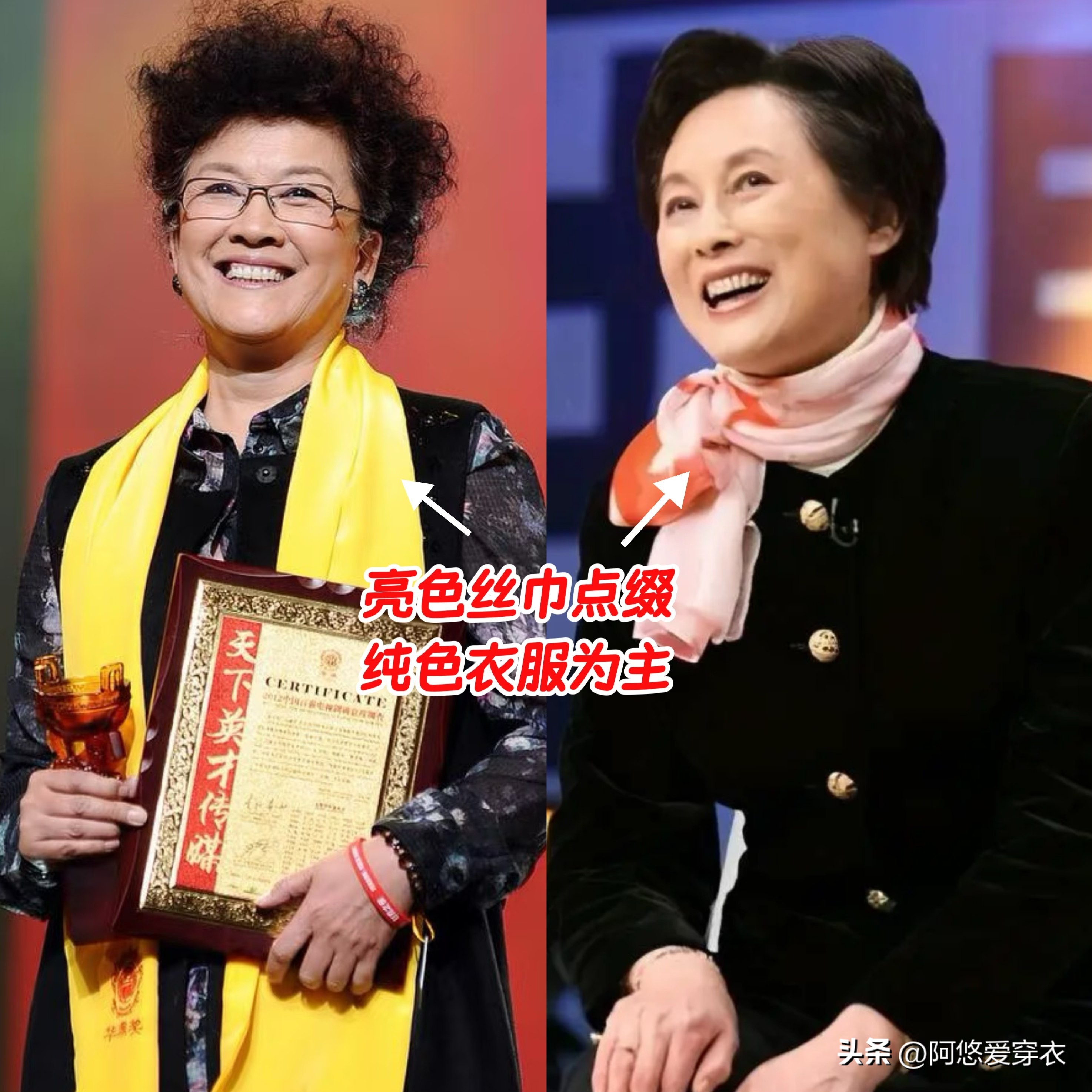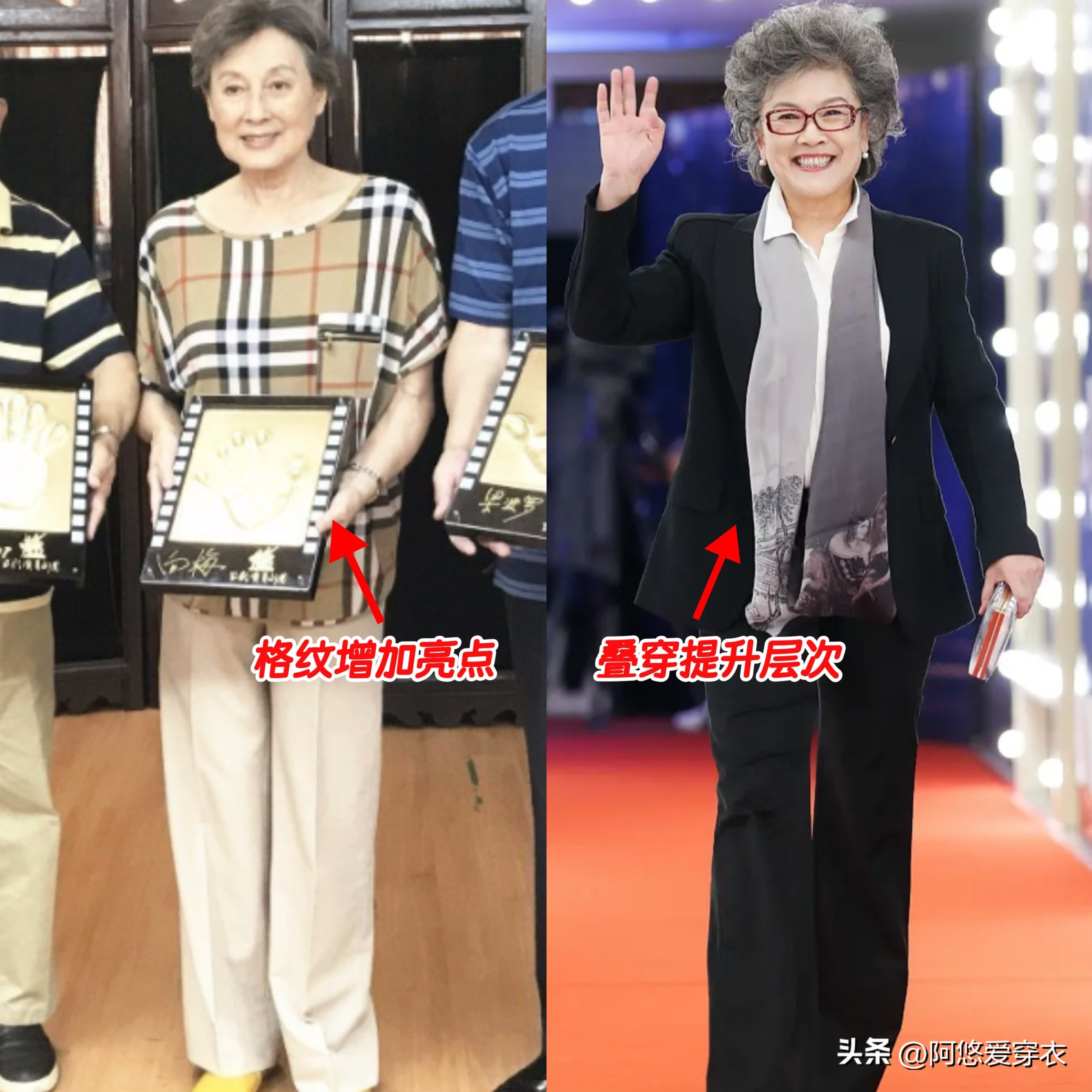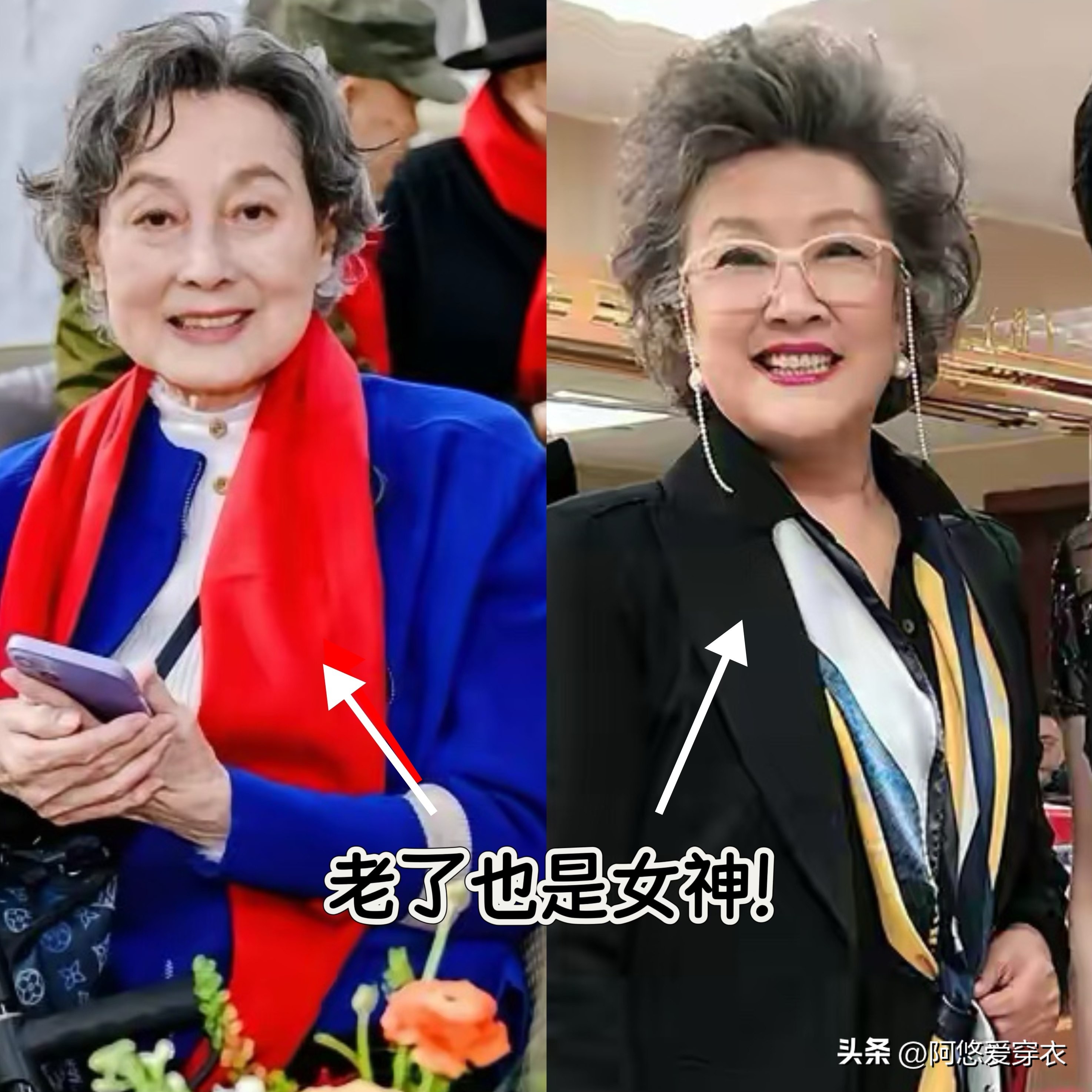 在中老年穿搭的 “去油腻” 赛道里,向梅和宋春丽绝对是教科书级别的存在,虽然她们穿的衣服都是很简单大气的款式,却总是能在人群中脱颖而出,靠的就是配饰。
