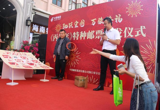 活动当日清晨,距离邮票首发仪式正式启动还有两个多小时,海口骑楼主题邮局门前已聚集了大批闻讯而来的群众。他们或参观主题邮局感受历史韵味,或相互交流集邮心得,等候活动开启。来自河南洛阳的张女士便是其中一员,她笑着说:“前段时间我刚在此参加《海南自由贸易港》特种邮票设计师签售活动,今天又恰巧遇上《丙午年》生肖邮票首发,在骑楼这种充满历史韵味的地方收藏生肖邮票,格外有纪念意义,我一定要来凑个热闹!”