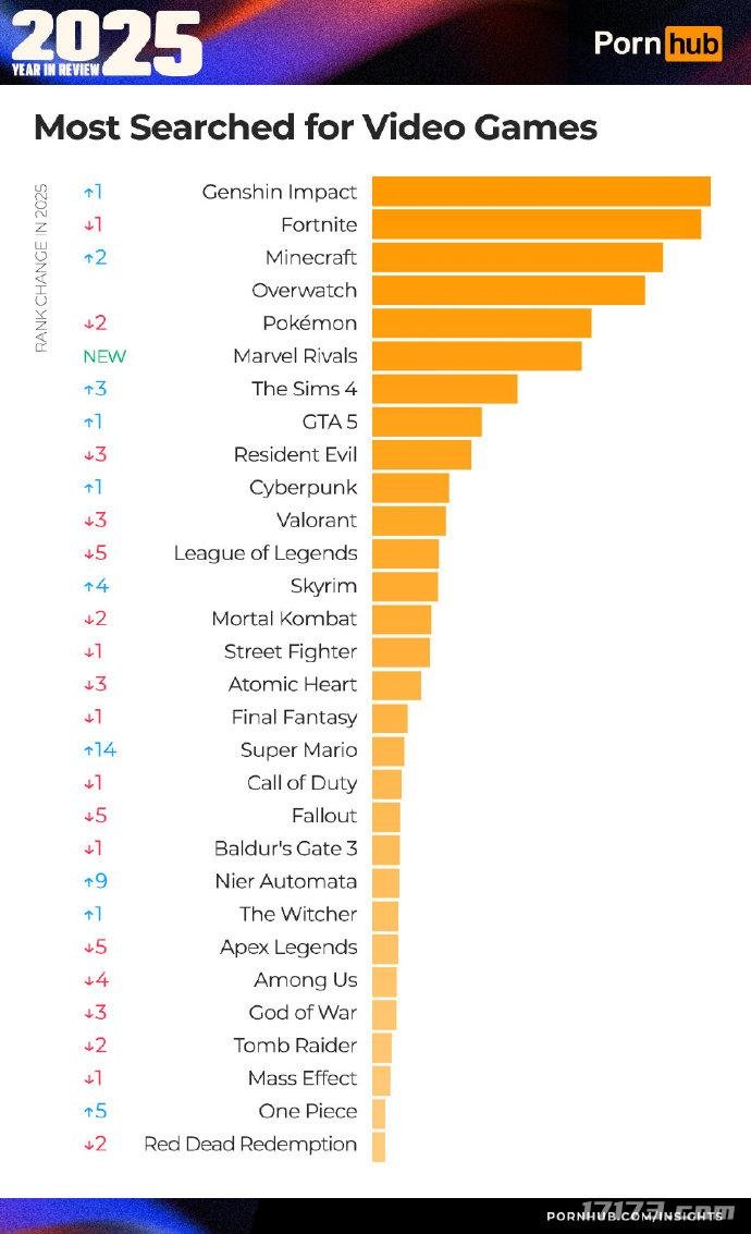 P站日前公布了2025年的年度报告,不出所料,《原神》又一次排在了搜索榜榜首。
