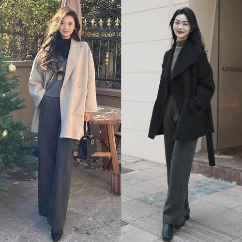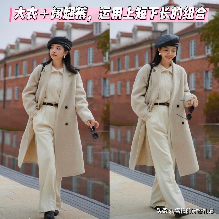 一、组合搭配最关键的就是{大衣、阔腿裤要选对}