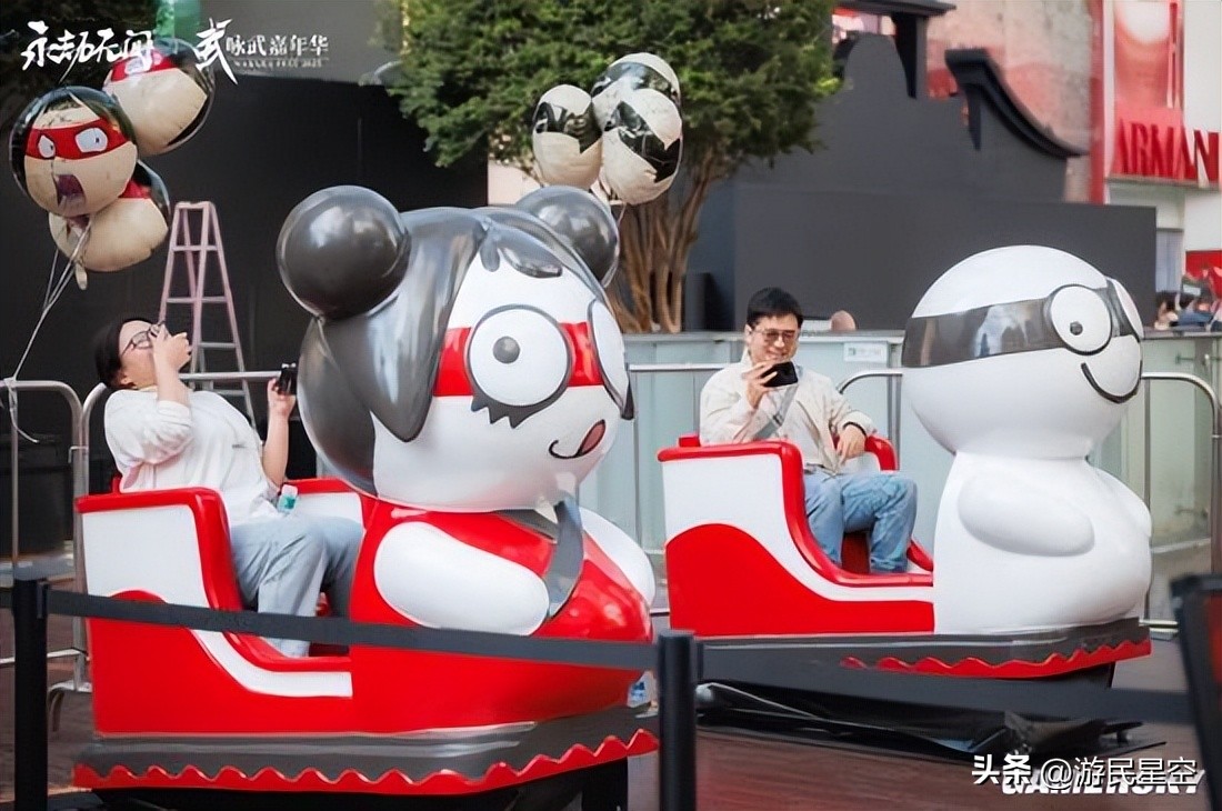 一位现场工作的老师向我介绍到,在可以体验趣味编发等项目的“劫味变装”区域,同样也有不少男生主动参加;不远处的“劫宝摇摇车”,也吸引了许多“大朋友”的跃跃欲试......大多数情况下,大家更多是不自觉地被现场的氛围所感染:cos自己心怡的角色也好,去玩梗搞怪也好,在这里的每一名玩家,都可以没有任何顾虑地以自己喜欢的方式展示自我,表达热爱。