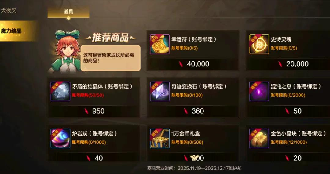 【1】“魔力结晶商店”将在17号更新后删除,大概率是没有第二期商店的,