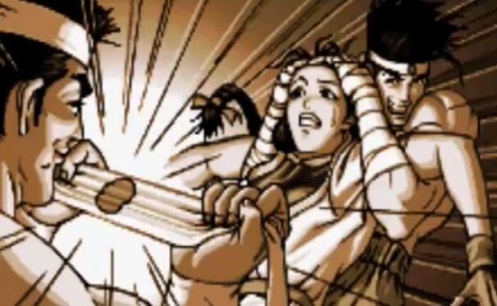 到了《拳皇15》时期,东丈再次泡起了比利的妹妹,还给她带回来一个比较特殊的“花”。要不是比利及时出现,东丈估计又要得逞了吧!