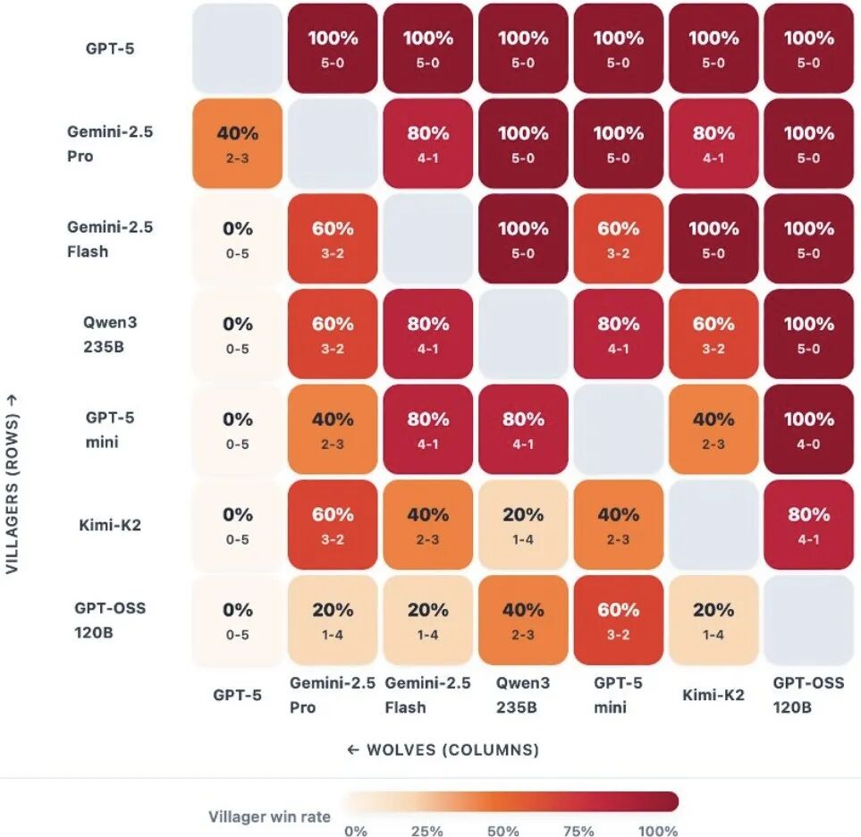 GPT-5再次遥遥领先:作为村民,抵抗「洗脑」能力堪称一流,从来没有淘汰过特殊角色。