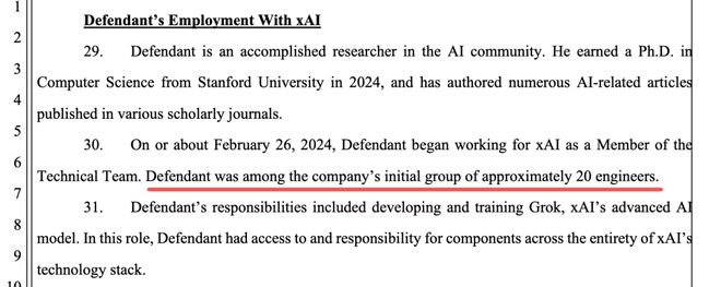 况且,按照起诉书上的说法,Xuechen Li还是xAI最初的约20名工程师之一。
