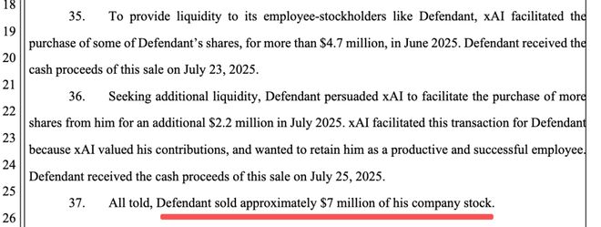 xAI称,为了向Li这样的员工股东提供流动性,xAI于2025年6月协助购买了被告的部分股份,金额超过470万美元。
