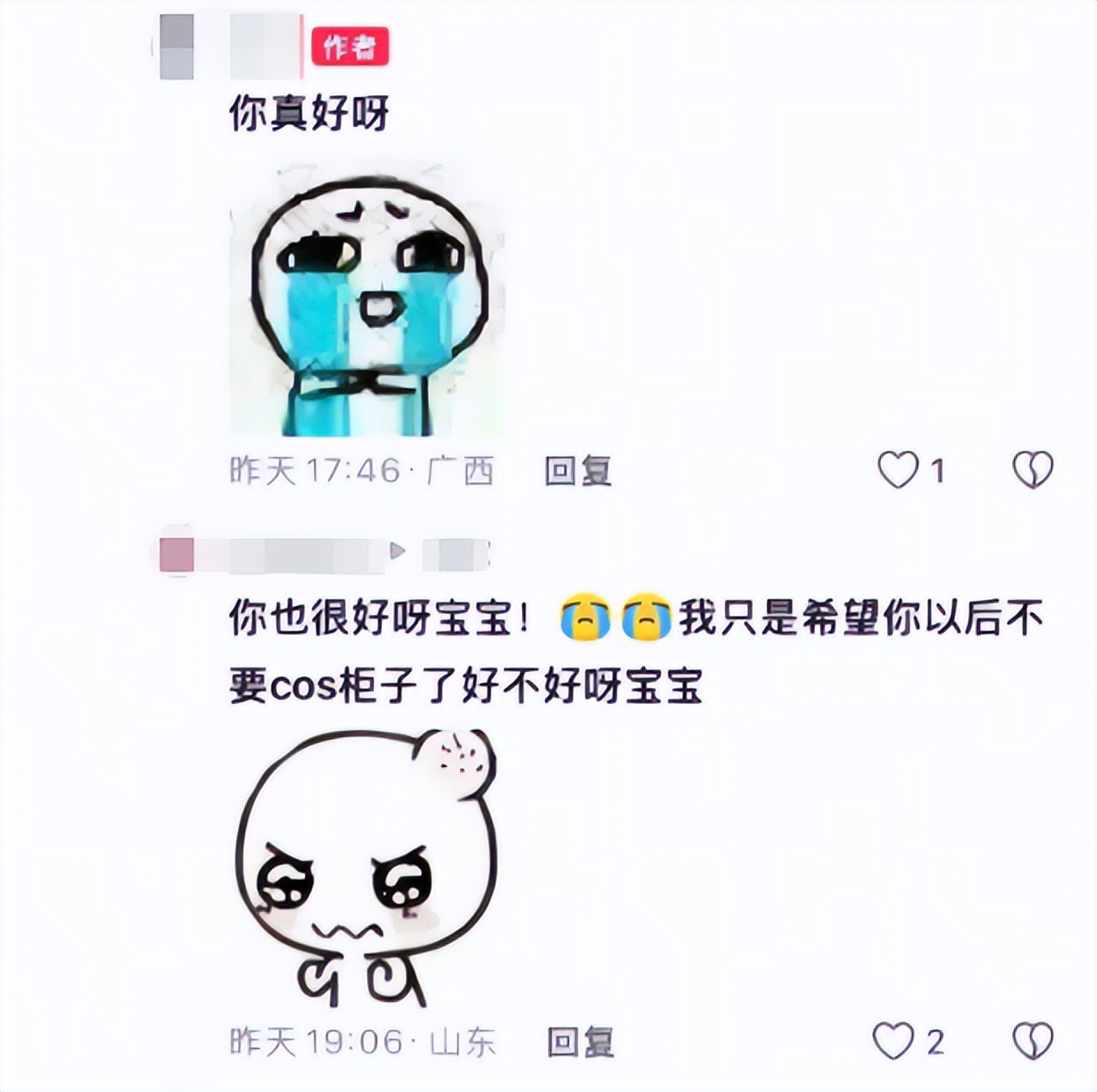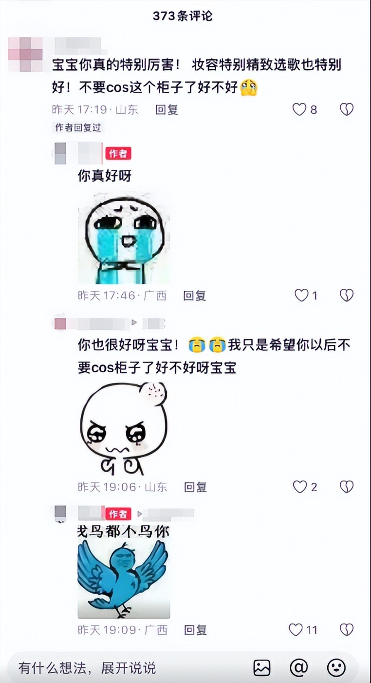 但这位博主,却是个战术天才。他先是发了一句“你真好呀”,表示对评论区意见的接纳,显得无比虚心听劝,让屏幕那头的交流者产生一种孺子可教的成就感,继续以“你也很好呀宝宝”之类的鼓励来回应。
