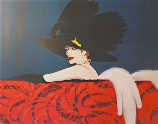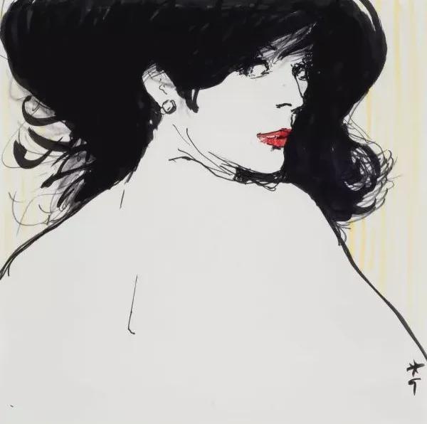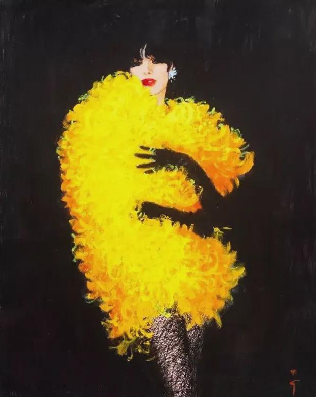 一抹朱唇、一道纤长的睫毛、一袭被碳粉线条强调的窈窕腰身,便足以诉说全部的故事。他画中的女性,是带着距离感的女神:她们或高傲冷艳,睥睨众生;或优雅神秘,静若幽兰。那是一种经过岁月淬炼、深入骨髓的贵族气质,一种“唯我独尊”的强大气场,让人心甘情愿沉醉于其石榴裙摆的惊鸿一瞥之中。