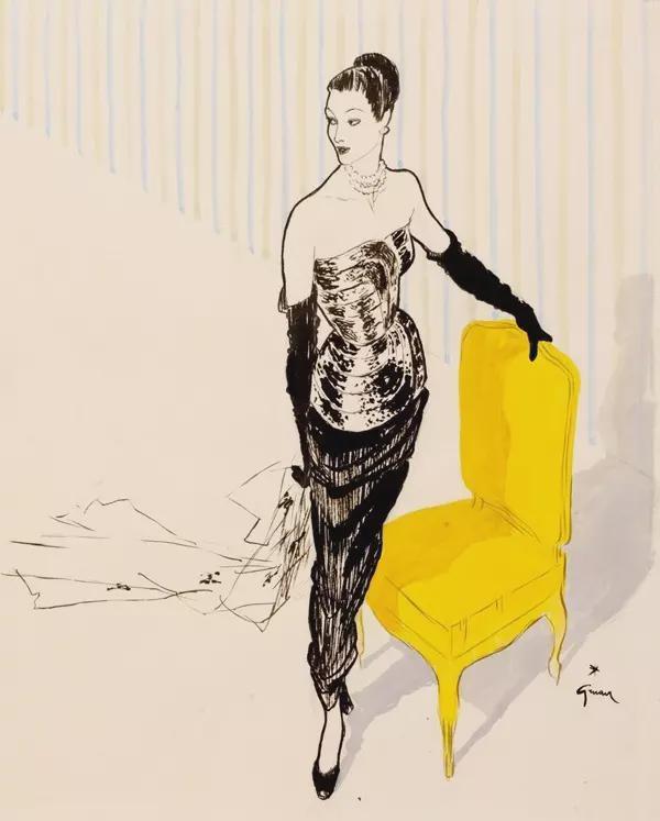 这种极具辨识度的风格,并非学院派的产物,而全然源于天赋与生命的馈赠。1909年出生于意大利海滨的格鲁瓦,童年浸润在身为法国贵族的母亲所带来的时装氛围里,高级定制工坊的试衣间与社交场上的华服倩影,成了他最初的美学启蒙。十五岁后,他随母亲定居巴黎并改姓,那个传奇的“G”字签名就此诞生。未曾受过传统绘画训练的他,反而毫无束缚,让想象力与直觉引领画笔,将脑海中构想的诗意与性感直接倾泻于纸面。