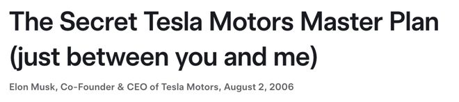 早在2006年,第一篇秘密宏图发布,目标简单粗暴——让全世界用上电动车,加速可持续能源转型。