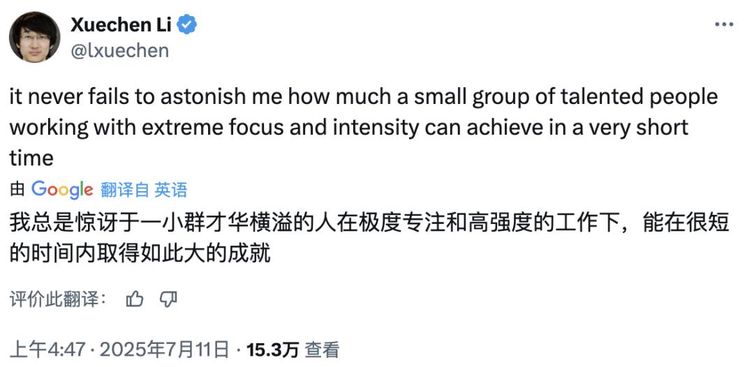 彼时xAI也就刚成立半年多,Xuechen Li算是xAI早期的约20名工程师之一。他负责开发和训练Grok,可访问整个技术栈。
