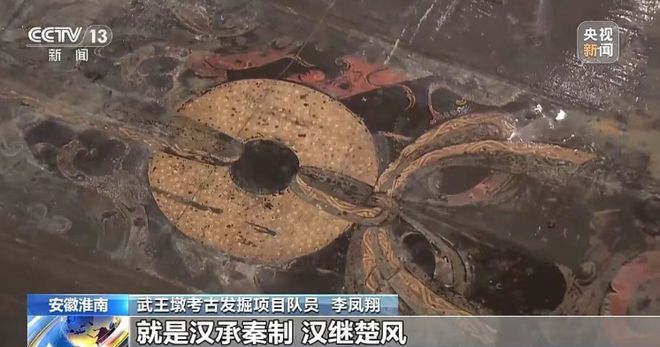 所谓“汉继楚风”,马王堆墓中出土的漆器及辛追棺椁上的图案都带有浓厚的楚国审美色彩。比如楚人喜用的凤鸟纹图案,时常会出现在马王堆漆器中。武王墩墓彩绘棺椁中的悬璧纹图案,马王堆辛追墓棺椁中亦有,这都体现了两座墓葬文化的关联性和传承性。