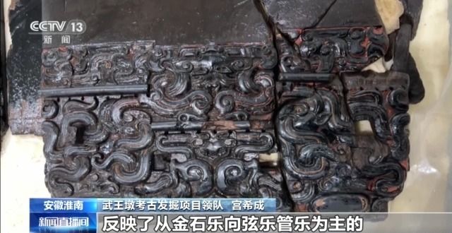 武王墩一号墓出土的乐器规模空前,除编钟、编磬等金石乐器外,更有瑟、笙、竽等多种管弦类乐器,其中一件长约2.1米的瑟,是目前考古发现最大的瑟。专家介绍,武王墩墓出土的管弦类乐器种类齐全且占比很大,反映了战国晚期楚国礼乐制度的变化。