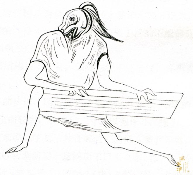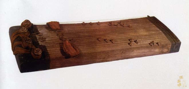 马王堆辛追墓出土的彩绘棺头挡的鼓瑟图像