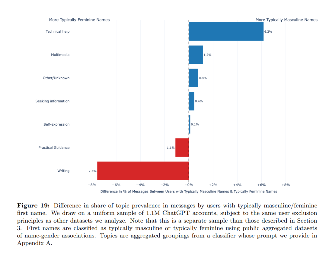 关于使用人群,论文得出的最核心观察是:ChatGPT的性别差距已经大幅缩小。