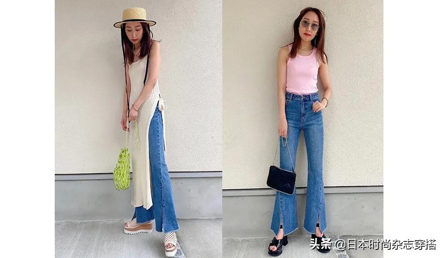 左:喇叭牛仔裤、长背心/Lily Brown 帽子/シャポードオー 项链/ZARA 包包/CASSELINI 凉鞋/MURUA 右:喇叭牛仔裤/Lily Brown 背心/PETIT BATEAU 墨镜/SNIDEL 手镯/BEAUTY&YOUTH 包包/ZARA 凉鞋/SLY