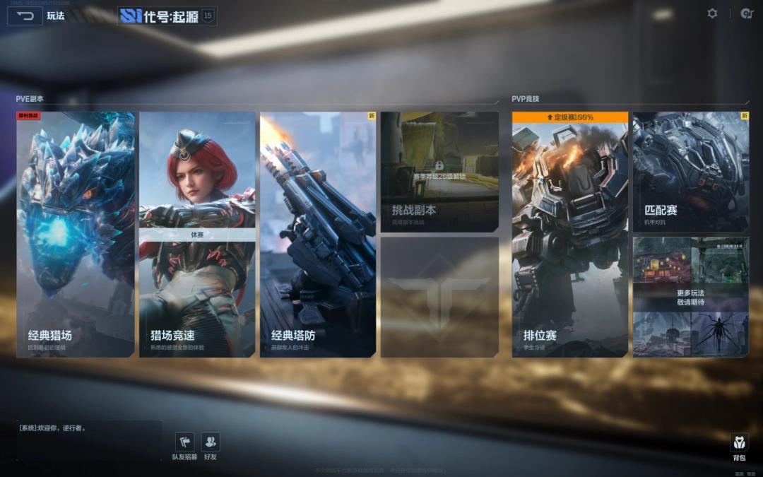 说完局外的养成要素,我们再来聊聊《逆战:未来》在第一赛季能为玩家带来哪些丰富的玩法。以我目前游玩的进化测试版本为例,PVE玩法分为“经典猎场”“猎场竞速”“经典塔防”和“挑战副本”,PVE玩法则以机甲战的匹配赛和排位赛为主,后续公测时还会增加新的玩法模式。单就目前这几个现有玩法体验下来,我个人都还比较满意,如果你是《逆战》的老玩家,它们对你来说应该不算陌生,实际体验也基本维持了《逆战》最初对它们的设想,没有夸张的数值差异,也没有飞天遁地的“仙战”离谱场面,无论是塔防还是机甲战,重点考验的还是玩家对游戏底层机制和地图设计的理解。