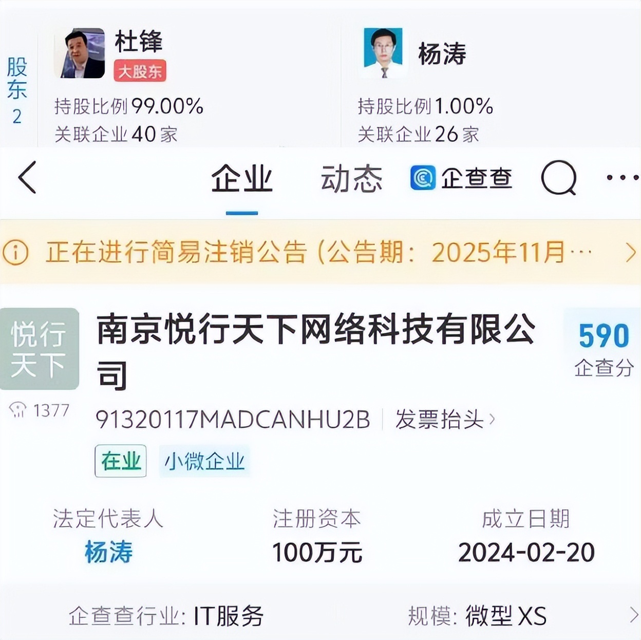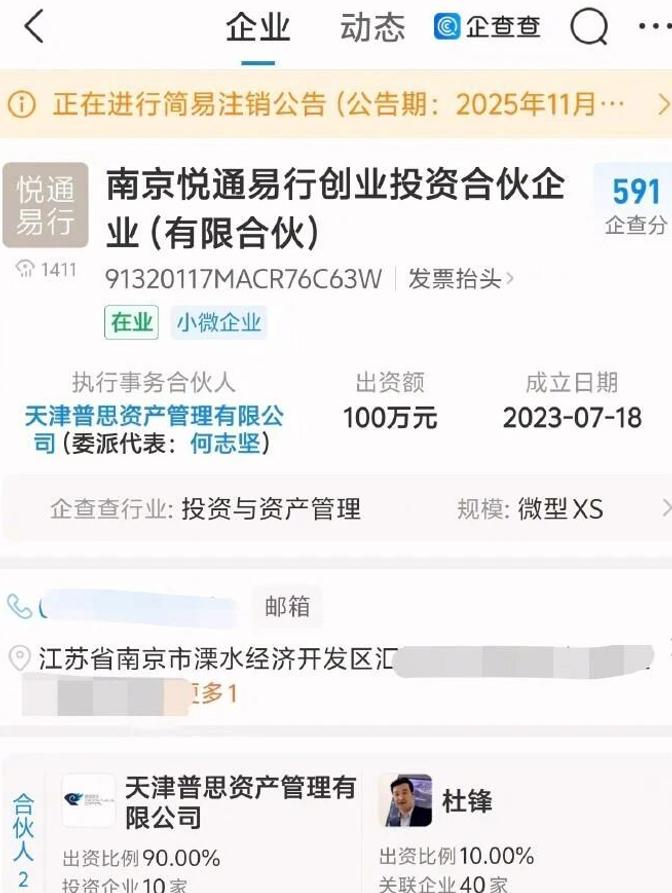 企查查APP显示,近日他入股的多名公司被注销。
