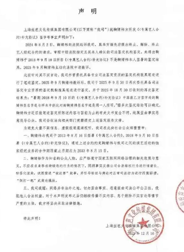 2025 年末,一场牵扯到 “超级巨星” 鞠婧祎的解约风波,再次将他拽回舆论漩涡。