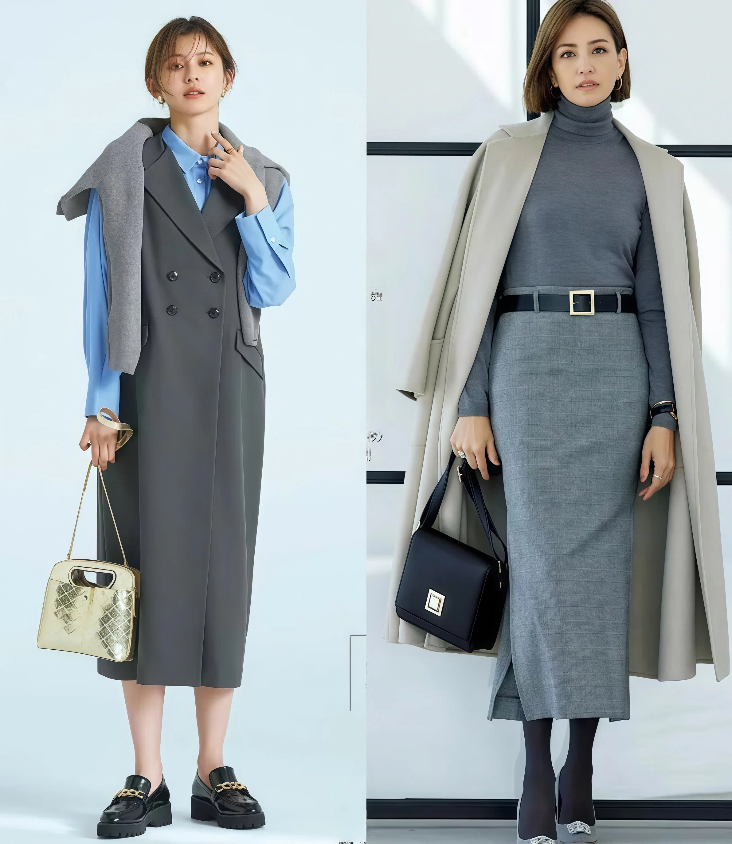 包臀铅笔裙→贴合身材曲线+面料硬挺