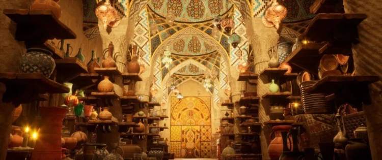 精心复原的中东商店,再现了伊斯兰金器与青花瓷交易的历史场景;