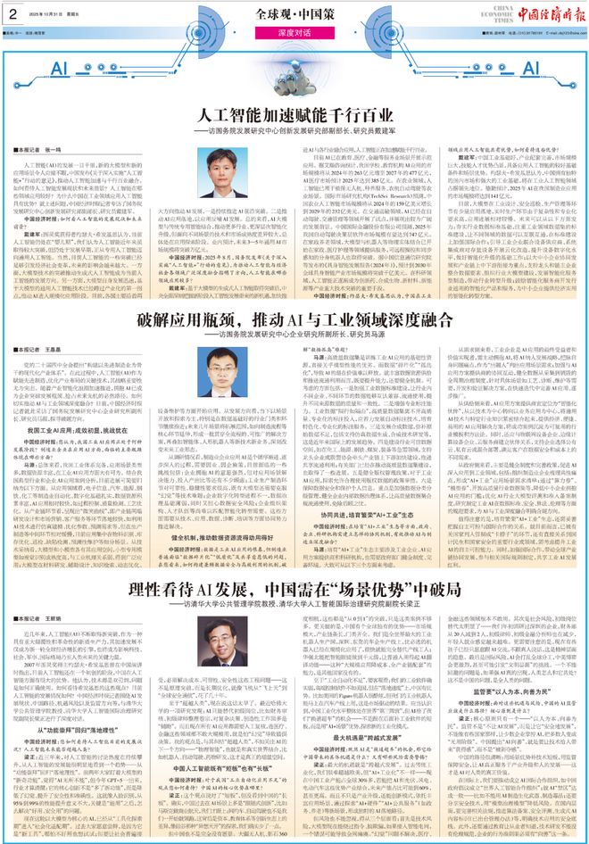 中国经济时报:既然AI是“换道超车”的机会,那它给中国带来的具体机遇是什么?又有哪些风险需要警惕?