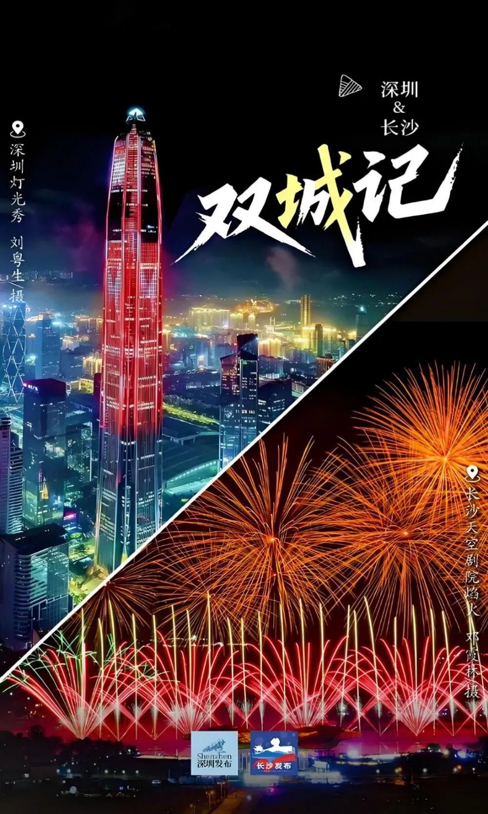 深圳的灯光秀和长沙天空剧院焰火 图片来源:深圳发布