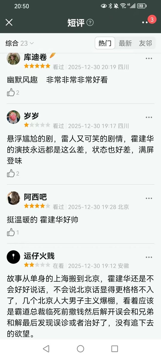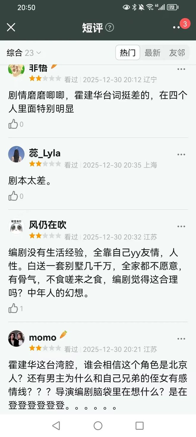 这部主打中年兄弟情和解的剧,刚开播就把优缺点展现得明明白白,观众评价一针见血,认为有的情节挺逗,但故事很套路,剧情一眼看到底。