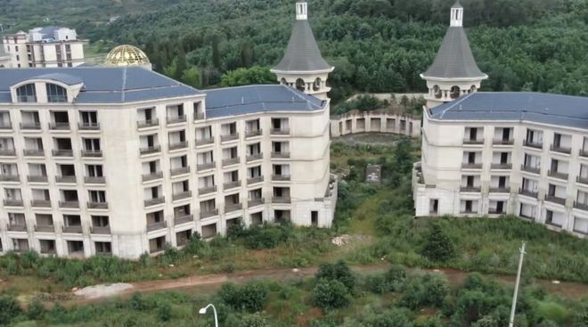 10多年前,它曾以12亿元的巨额投资启动建设,欧式风格的设计甚至请来了参与迪拜帆船酒店的团队。然而如今,这里荒草丛生,门窗破损,空荡的楼宇间只能听见风声穿过,宛若一座被遗忘的城堡。