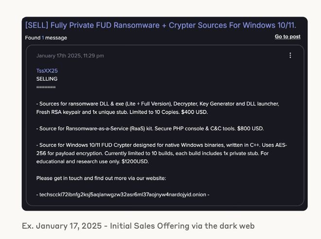 GTG-5004 在暗网发帖售卖恶意软件|图源:Anthropic