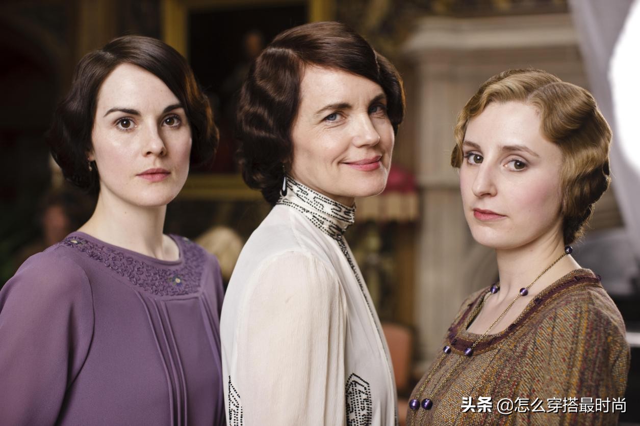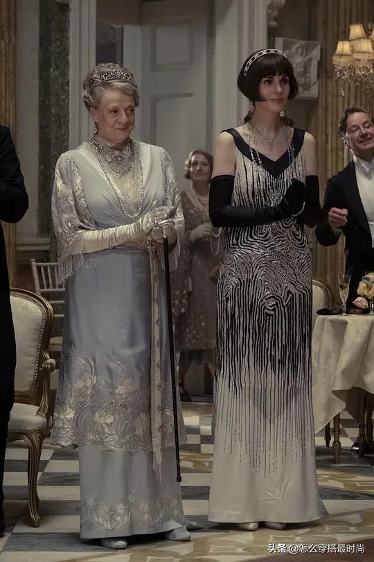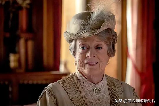 唐顿庄园里以老夫人为代表,体现了当时传统贵族典雅、保守的服饰特点,之前维多利亚时代的服饰多是蓬蓬裙,非常繁琐、庞大且非人,因为当时普遍追求丰乳肥臀、蜂腰,所以,女性从很小就要开始穿束腰,这对女性身体伤害非常大,到了新的时代,这样的旧制就被淘汰了,但是像老伯爵夫人这样传统的贵族,在服饰上还是保留了旧制典雅的一面。显得非常庄重、严肃。