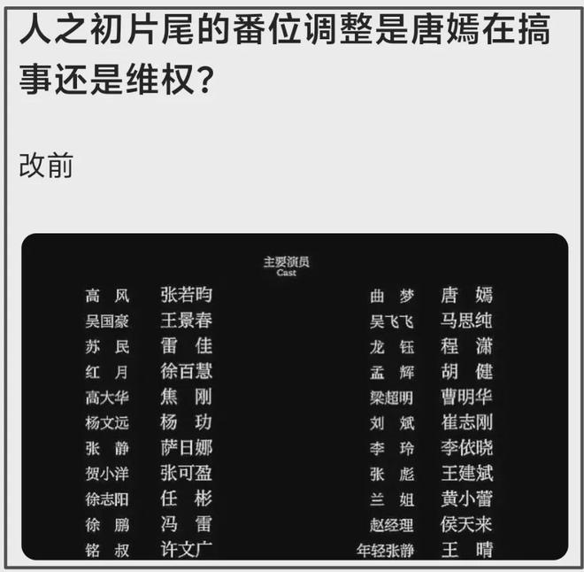 《人之初》播出之后,出现了连夜改片尾番位的情况。
