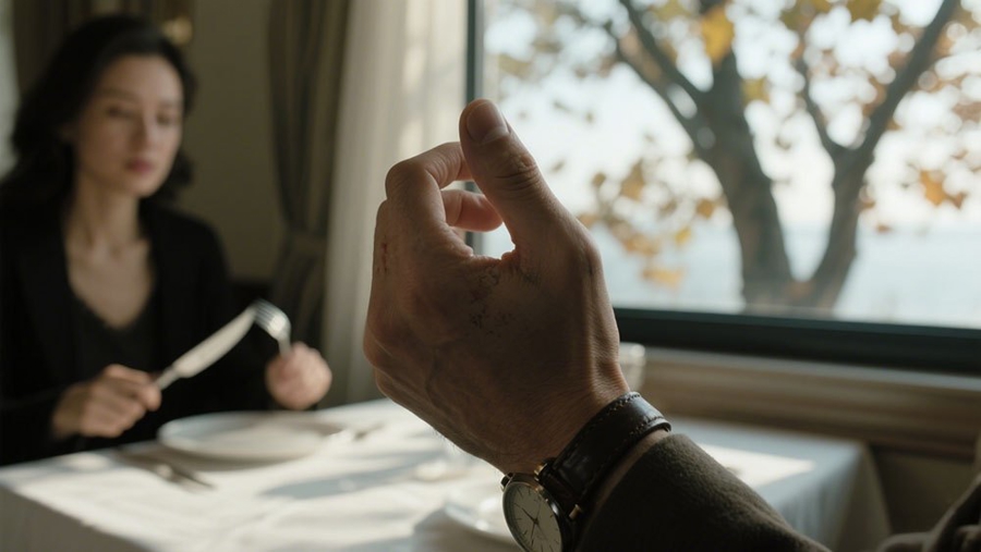 当她从卫生间出来的时候,一眼看见他孤独地坐在那里孜孜不倦地咬着手指甲。她愣住了。然后迅速将餐费的一半再转给他,说,我走了。