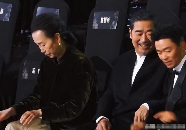 刚好是与她坐在同一排的王宝强,看到她尴尬的处境,选择主动去搭话,终于让她露出一点微笑。