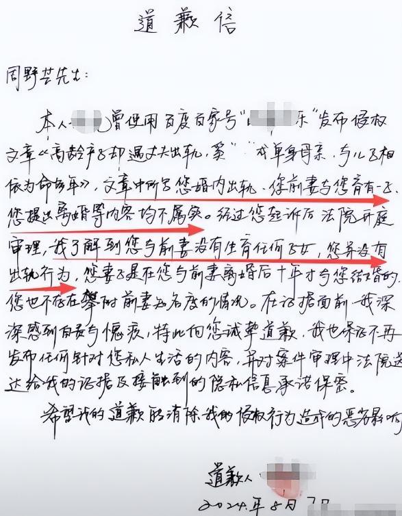 最终污蔑的人写下道歉信,周先生的冤屈也被洗清,但奚女士则被这封道歉信撕下了“体面”。