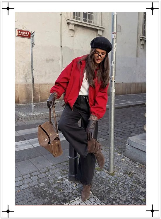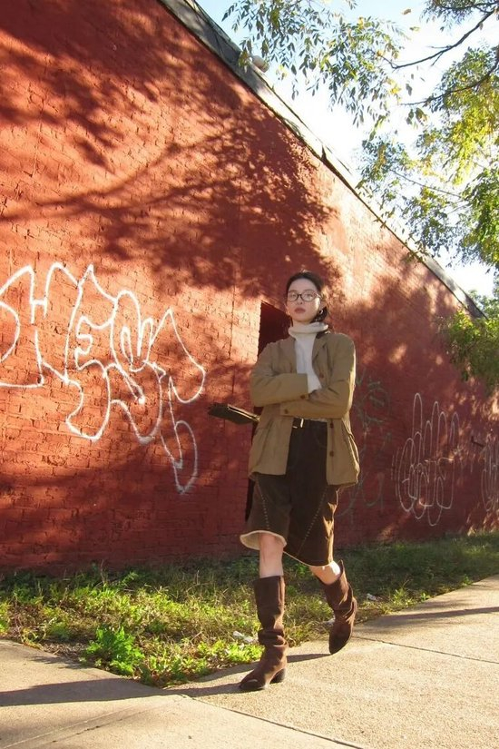 短款外套很符合当下年轻人的穿搭风格,也对亚洲女生更有参考性,故意露出的一截长袜使整体多了一些帅气街头的元素。