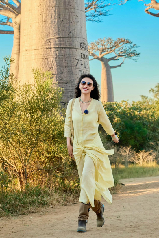 钟楚曦度假的两套不同风格造型都选择搭配褶皱靴,把腿形修饰得又细又直,视觉上直接拉长10cm,简直是旅行穿搭教科书。