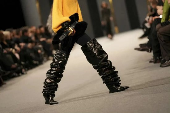 明星们爱的这种褶皱靴,可不是突然火起来的,时装周上各品牌都早早集体“押注”,用不同材质、设计,把“褶皱美学”玩出了花。