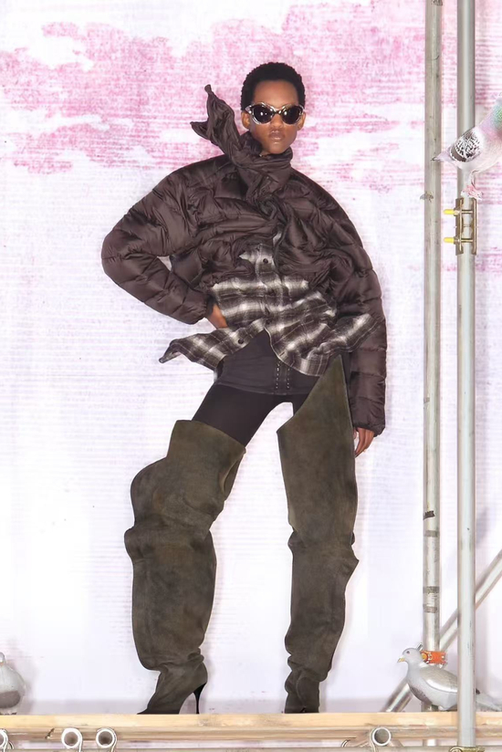 前不久H&M联手Glenn Martens发布的单品中也有褶皱靴的身影,大胆前卫的设计带着“日常的戏剧性”特点,呈现出打破常规的时尚张力。
