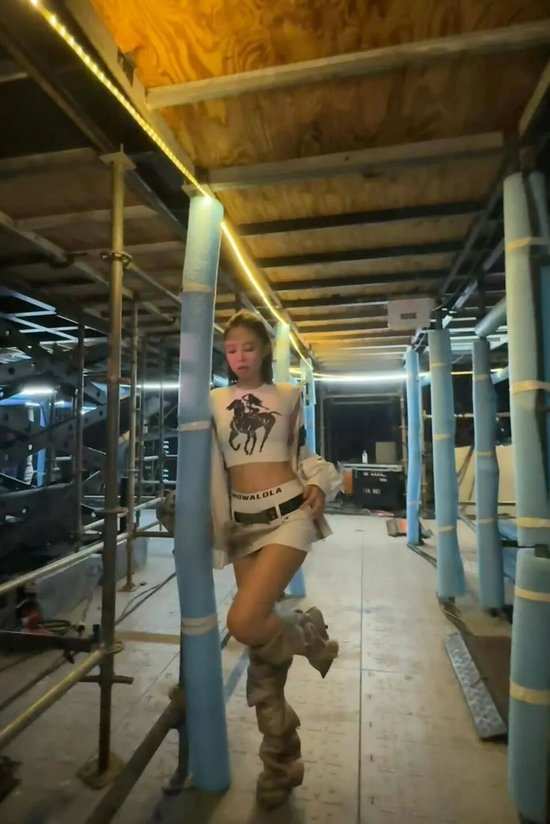 Jennie就是皱褶靴“十级爱好者”,几乎每场演唱会都出现褶皱靴造型,尤其偏爱用褶皱靴与各种类型服装做混搭,可以完美消化任何风格的造型,堪称“时尚天花板”。