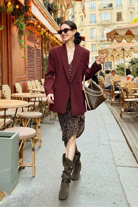 张婧仪的生日大片则把褶皱靴穿出了“温柔约会感”。麂皮褶皱靴配上细细的流苏,走路时会轻轻晃动,整个造型都是“美拉德风”。