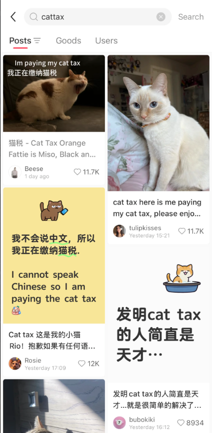 犹记得之前 Tiktok refugee 大举进军小红书,首先要交的就是「猫税」。