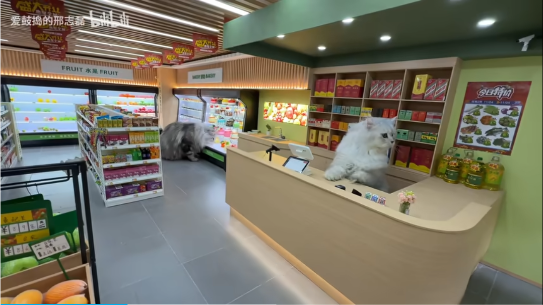 和猫一起拍视频也是一个专门的内容赛道,而且在这个赛道上精心付出的创作者并不少。B 站一个专门给猫猫搭房子、造停车场的 up 主刑志磊,一打眼以为是 AI,但其实是精细的手工,非常令人惊叹。