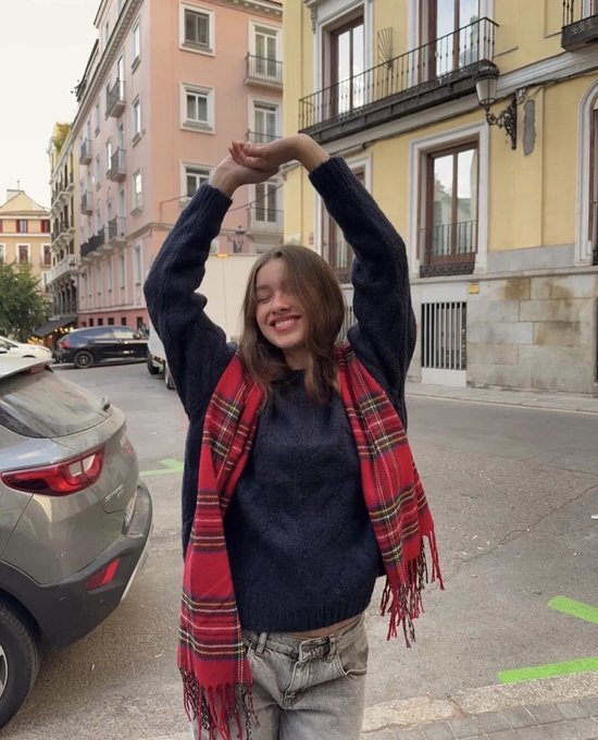 亮红色的围巾,永远拥有某种“血液般的温度”,无论你穿的是黑色大衣还是驼色呢外套,它都能让你看起来更鲜活、更自信。红色围巾的能量场是一种瞬间被捕捉的存在——它属于想要在冬天保持“热度”的人。