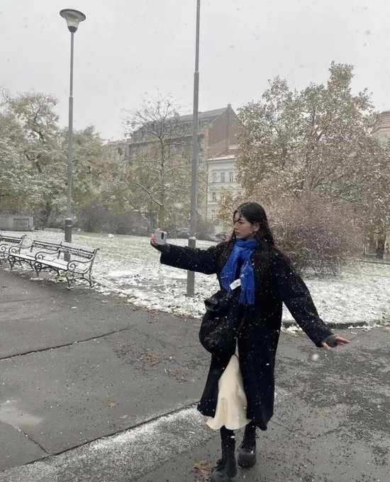 如果你的冬天是温暖的:请pick 杏奶色、米白、暖驼。这种色彩让人看起来更加柔软、贴心,像含着一点光的暖意,它适合想在冬天表现温柔的人。