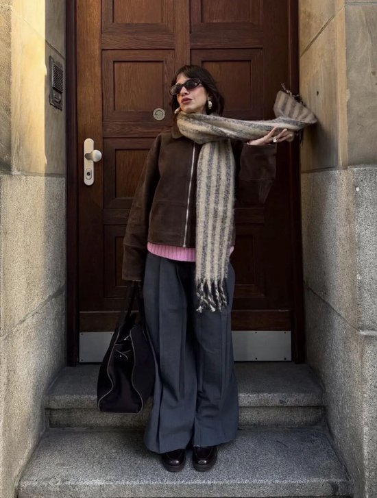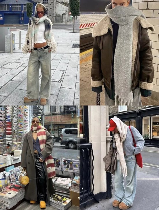 无论你穿的是Oversize大衣还是短款皮夹克,围巾都能改变造型的重心。